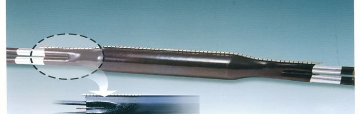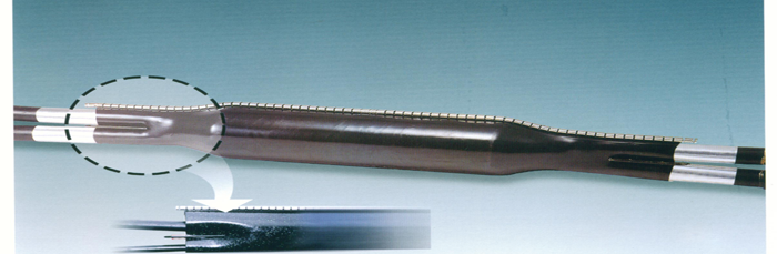 Heat shrinkable cable joint closures for telephone cables are fiber reinforced heat shrinkable closures designed for the protection of cable joints for the non-pressurized telephone cables network. The heat shrinkable cable joint mainly consists of a heat shrinkable, reinforced and wraparound sleeve and a wrap-around metal canister/cardboard liner. The heat shrinkable sleeve is made of a fiber reinforced high strength composite material with integrated layer of aluminum serving as a moisture barrier. The heat shrinkable sleeve is internally coated with a flexible heat adhesive which will melt and adhere to the cable to form an air and water tight seal. The wrap-around metal canister/cardboard liner protects the cable joints from moisture vapor transmission. The white line inside of the trajectory and the temperature-sensitive paint on the heat shrinkable sleeve can lead a good and right operation.